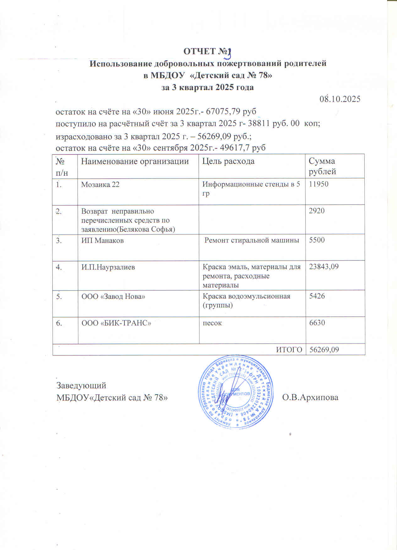 Информация о расходовании финансовых и материальных средств в 2025 году